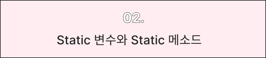 - static ๋ณ์๋ ํด๋์ค ๋ณ์(ํน์ ํด๋์ค์ ์ํ ๋ณ์๋ก, ํด๋น ํด๋์ค์ ๋ชจ๋ ์ธ์คํด์ค(๊ฐ์ฒด)๊ฐ ๊ณต์ ํจ)๋ก, ๋ณ๋์ ๊ฐ์ฒด๋ฅผ ์์ฑํ์ง ์์๋ static ์์์ ์ ๊ทผ์ด ๊ฐ๋ฅํ๋ค.