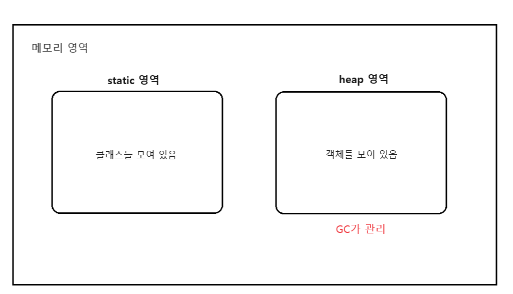 ๋ฉ๋ชจ๋ฆฌ ์์ญ์ ๋ณด๋ฉด static ์์ญ๊ณผ heap(ํ) ์์ญ์ด ์กด์ฌํ๋ค.